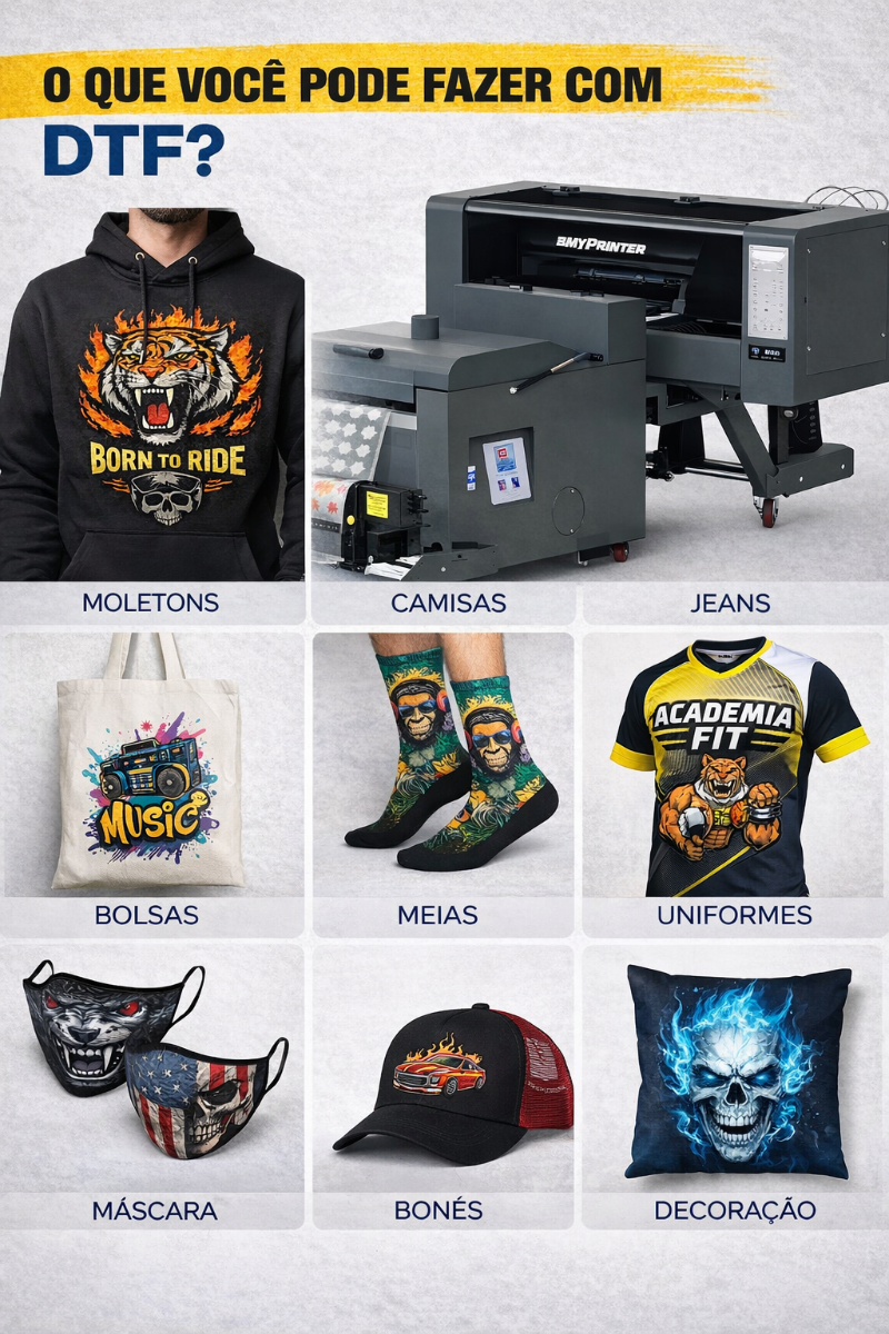 Impressão DTF, transfer DTF, estampa para camiseta, estampa pronta para prensar, DTF personalizado, película DTF para tecido, personalização de roupas, DTF para marcas de roupa e produção de camisetas.